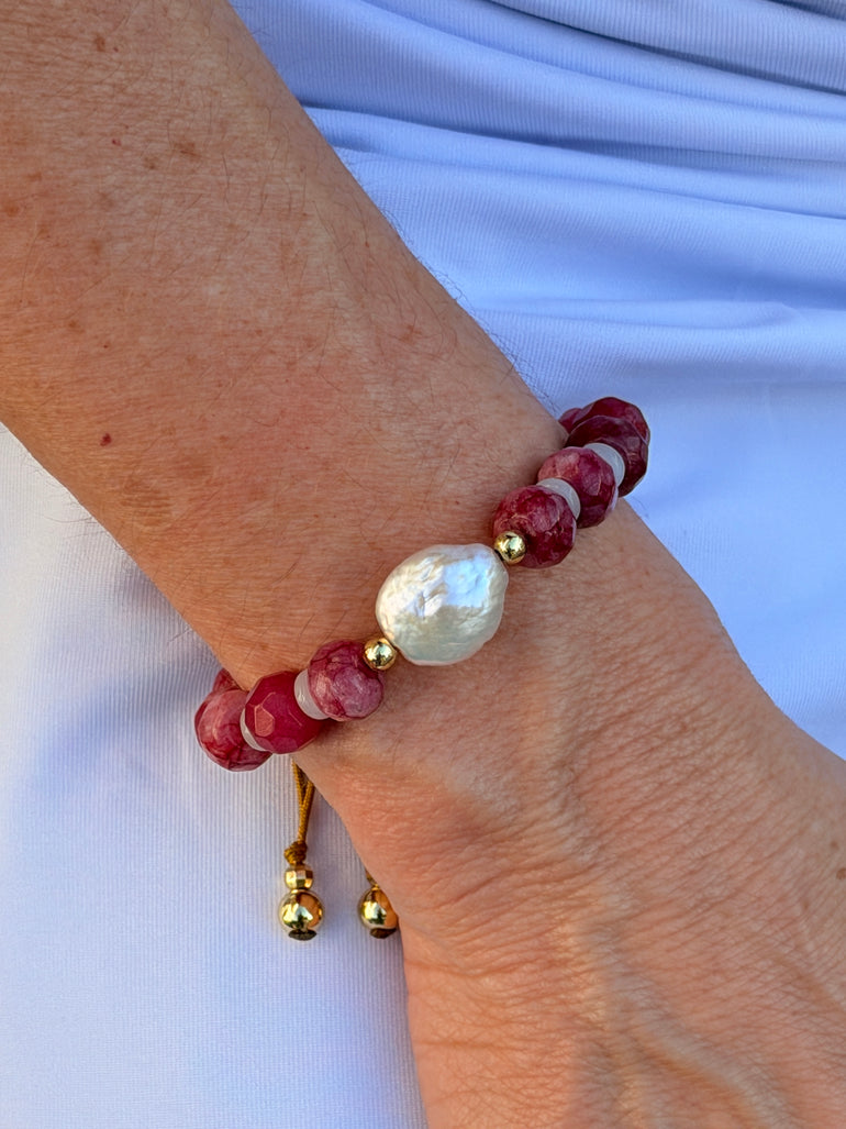 HANDMADE SEMI PRECIOUS ADJUSTABLE GOLD PLATED BRACELET
