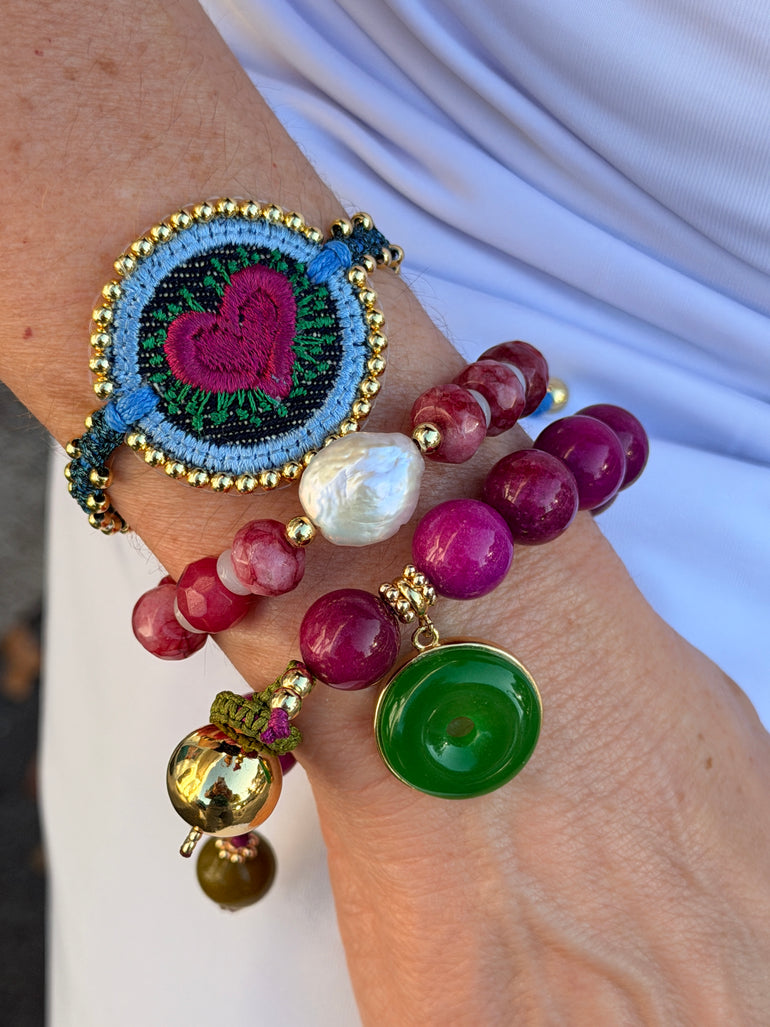 This handmade bracelet features semi-precious stones, skillfully crafted to offer an adjustable fit. The gold plating enhances durability and visual appeal, making it suitable for both everyday wear and special occasions. Its unique design allows for versatility in styling, complementing various outfits effectively.