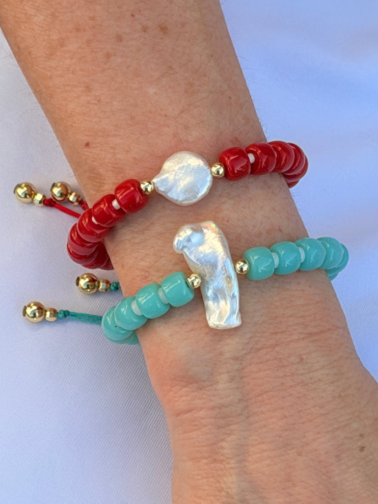 This handmade bracelet features semi-precious stones meticulously set on an adjustable gold-plated base. The adjustable design ensures a comfortable fit for various wrist sizes, while the use of semi-precious stones provides durability and unique aesthetic appeal. Each piece is distinct, offering an elegant addition to any collection.
