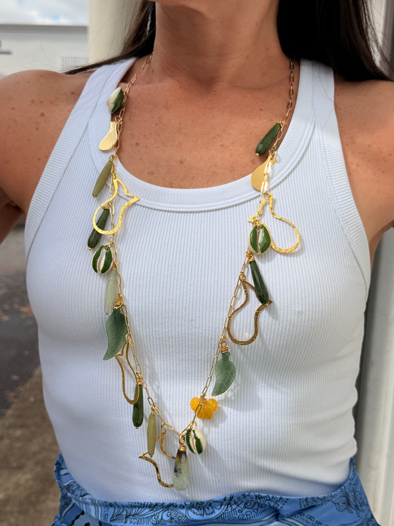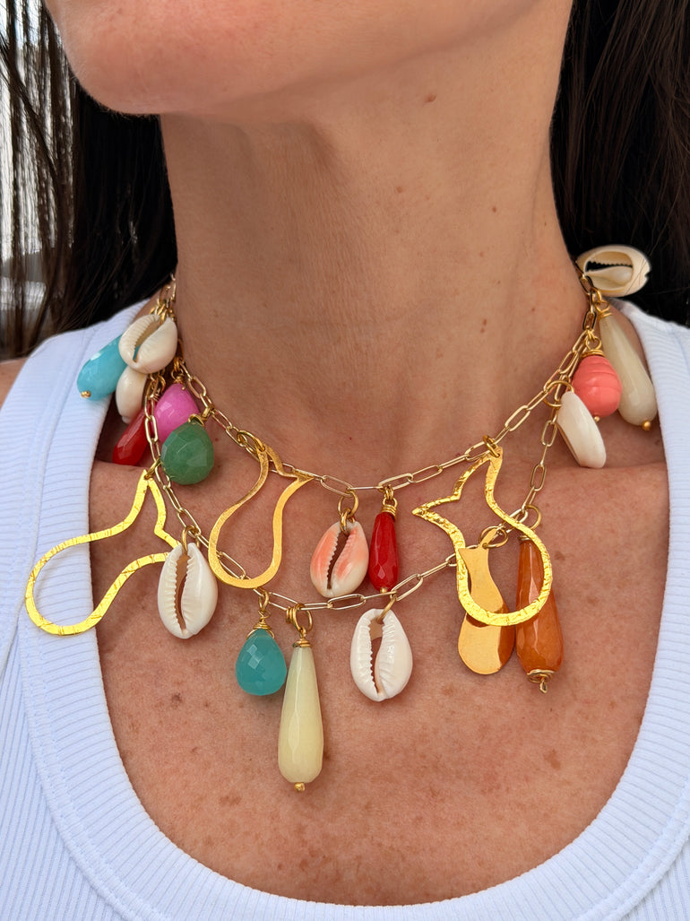 HANDMADE MULTI CHARMS GOLD PLATED LONG ADJUSTABLE NECKLACE