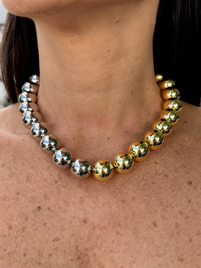 FASHION JEWELRY TWO TONES GOLD PLATED BEADS ADJUSTABLE NECKLACE