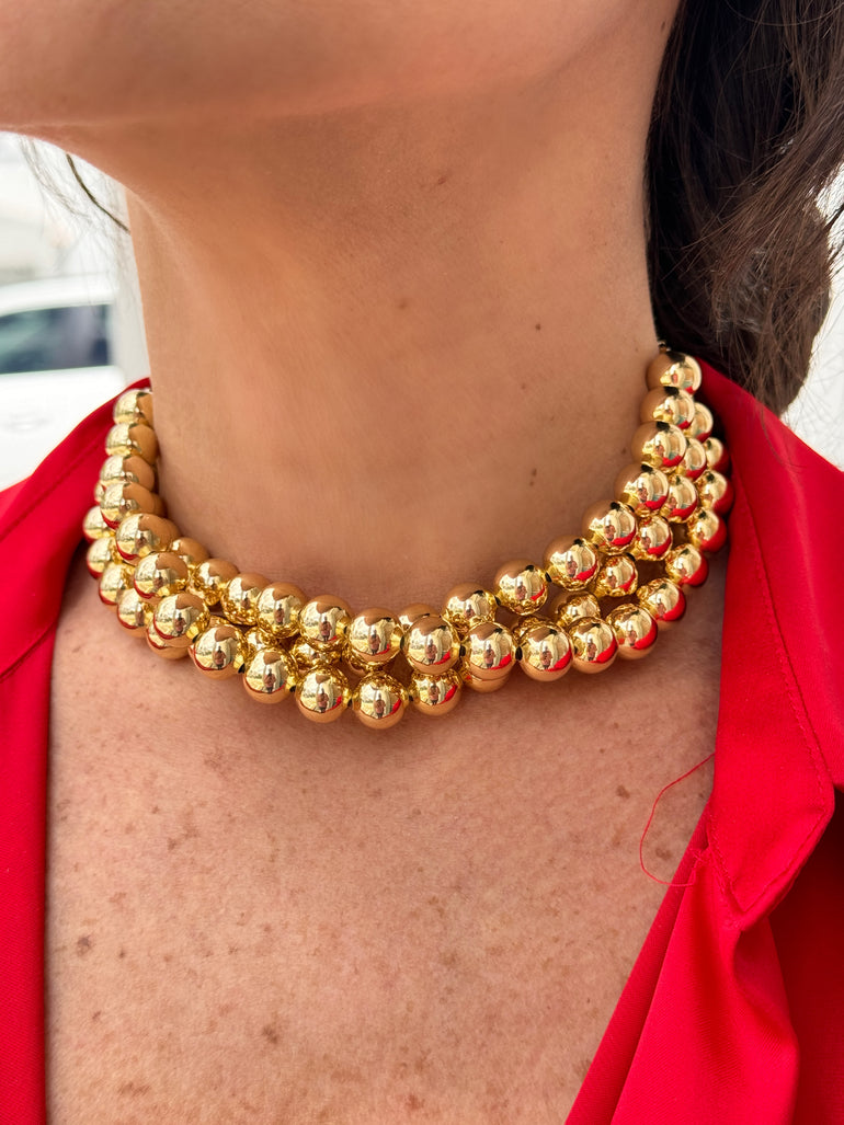 GOLD FILLED MULTI LINES BEADS ADJUSTABLE GOLD PLATED CHOKER