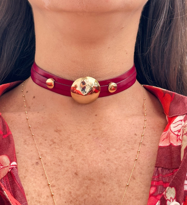HANDMADE LEATHER GOLD PLATED CHOKER