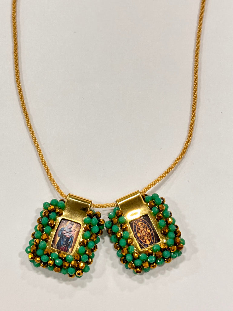 HANDMADE MEDIUM SIZE GOLD PLATED SCAPULAR NECKLACE