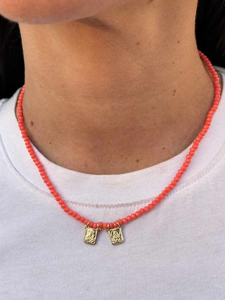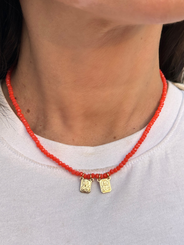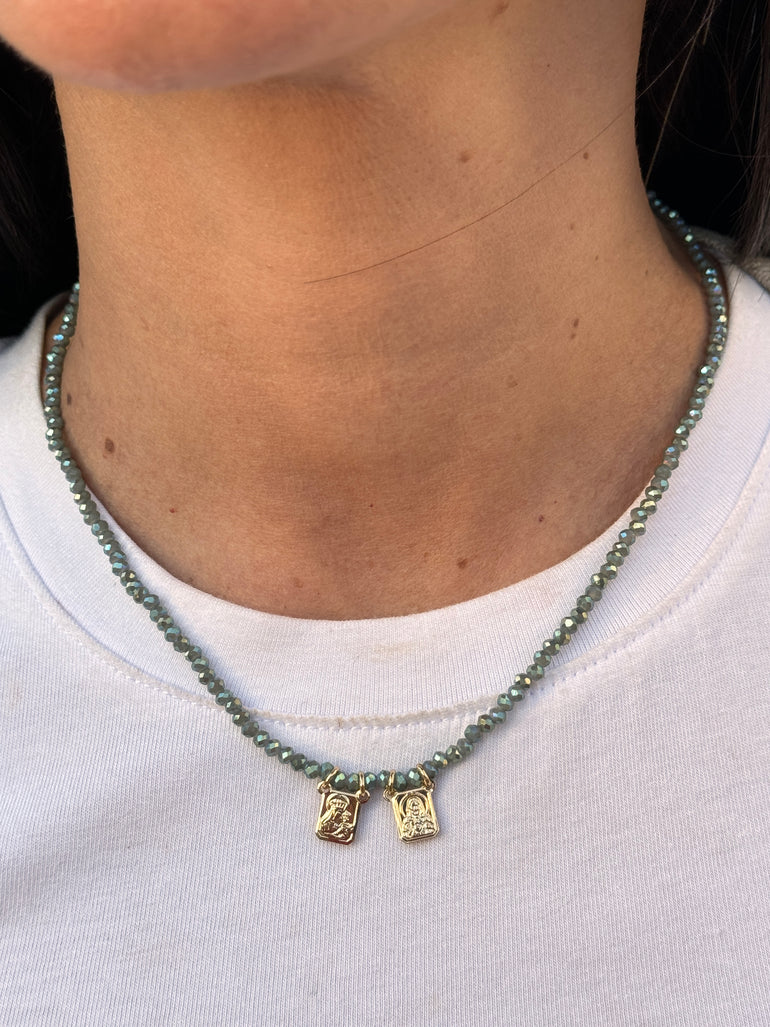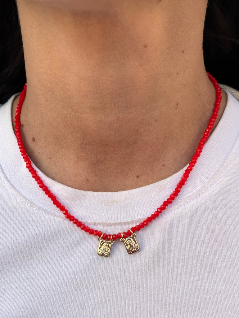 HANDMADE MINI SCAPULARS GOLD PLATED ADJUSTABLE CRYSTAL NECKLACE