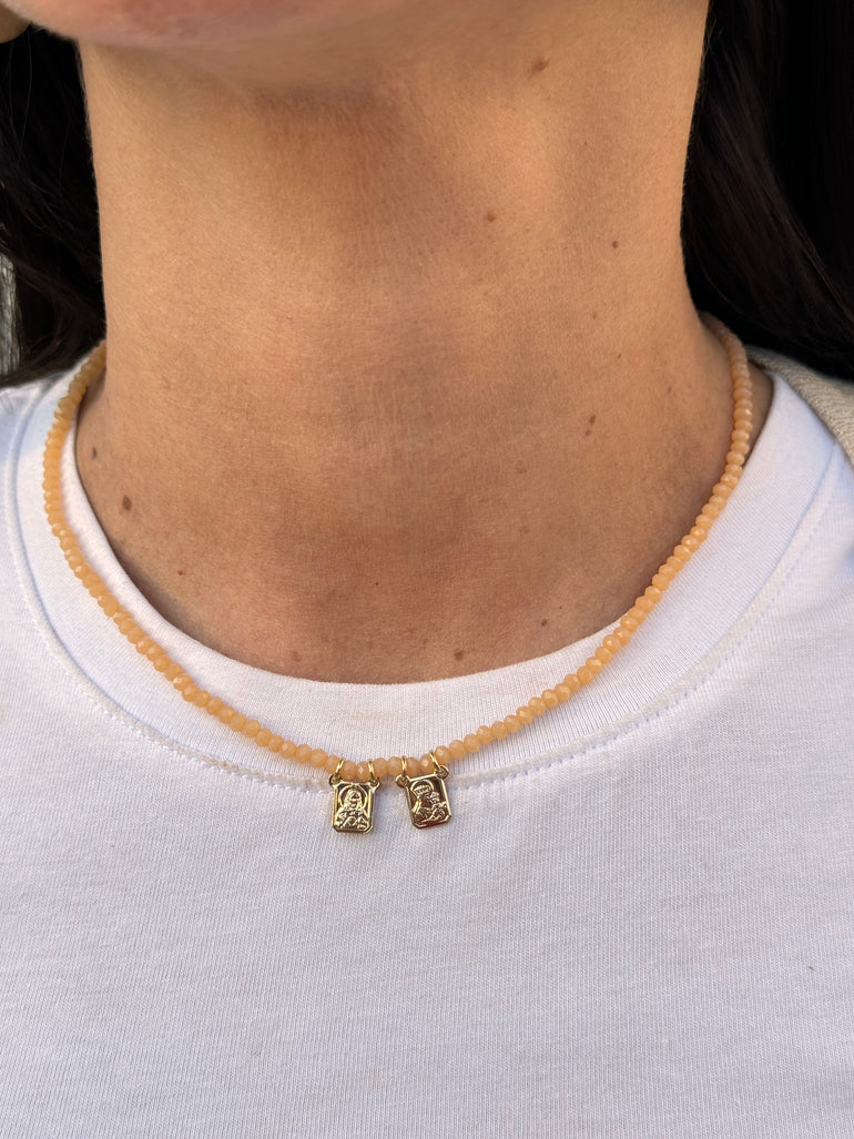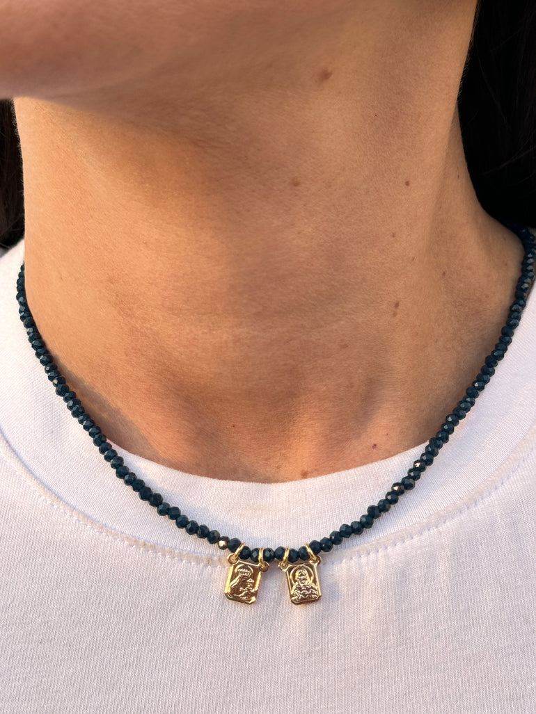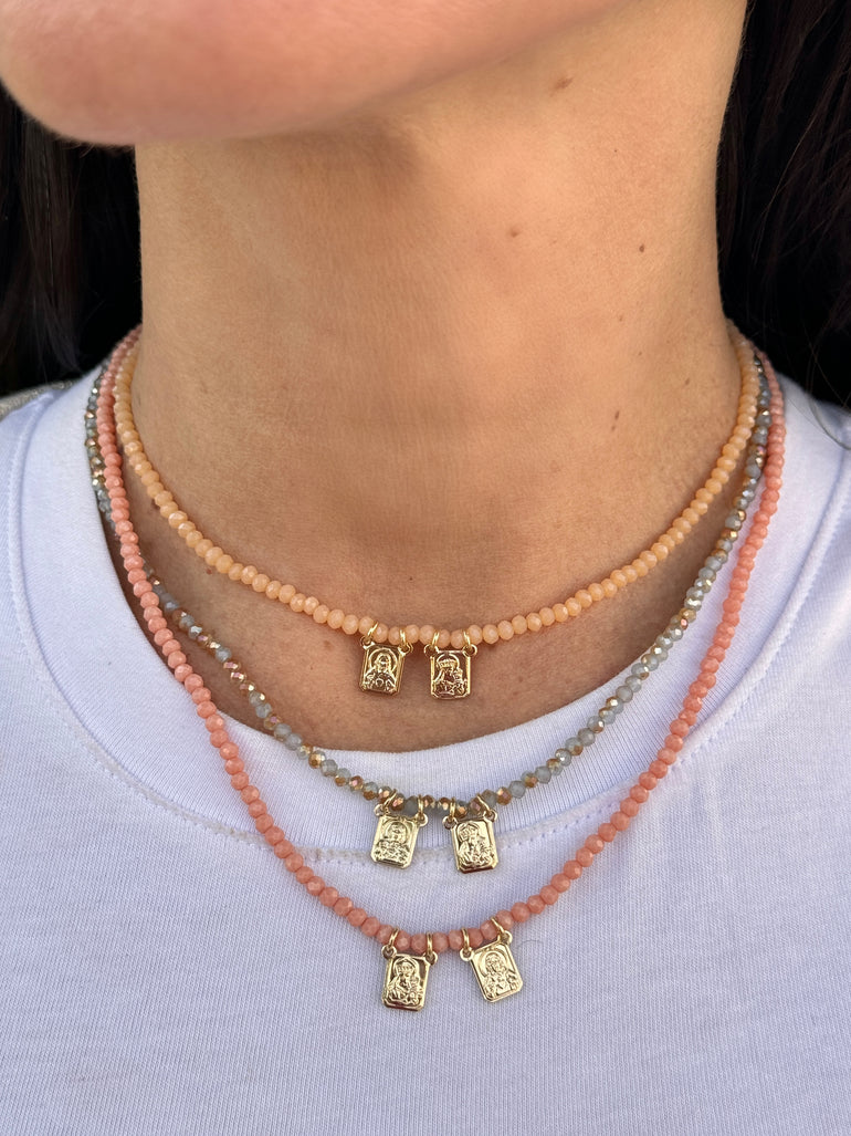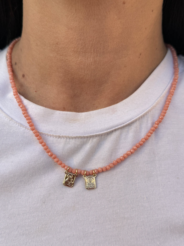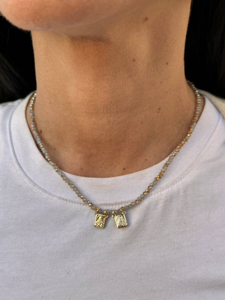 HANDMADE MINI SCAPULARS GOLD PLATED ADJUSTABLE CRYSTAL NECKLACE