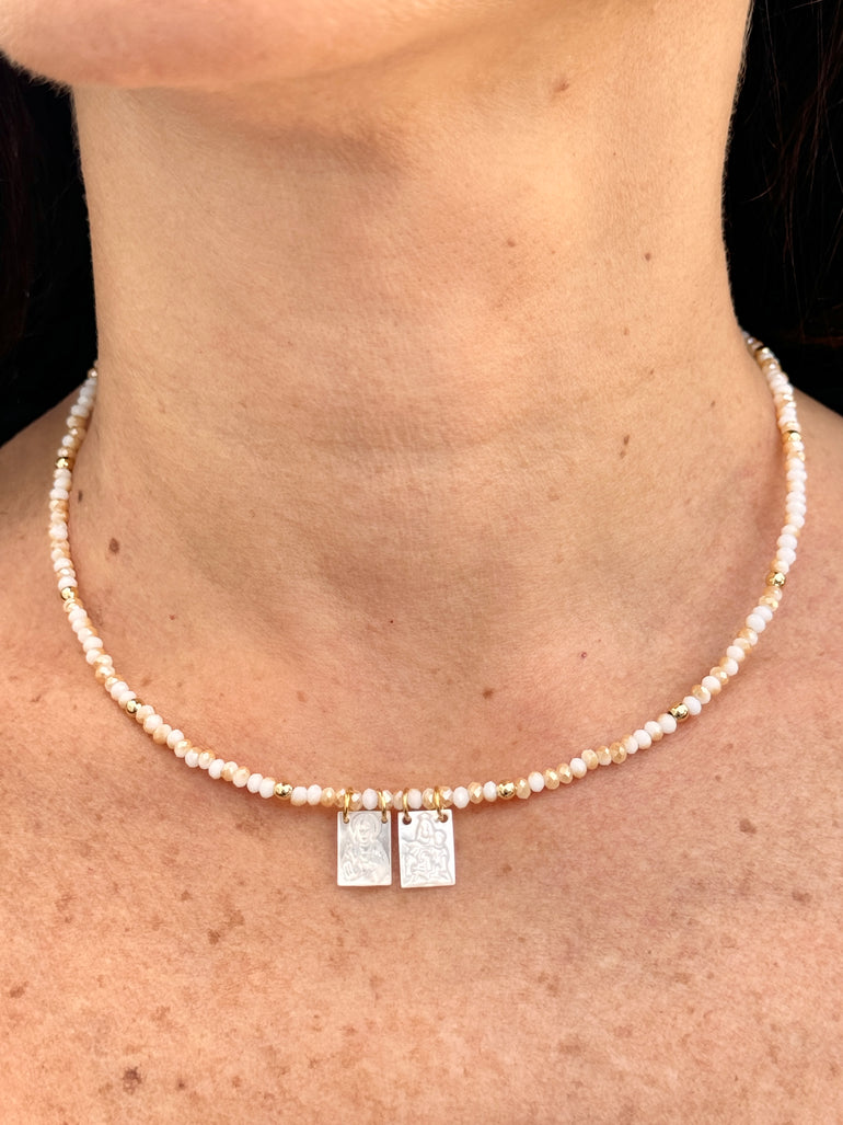 HANDMADE MOP & CRYSTALS ADJUSTABLE RELIGIOUS GOLD PLATED NECKLACE