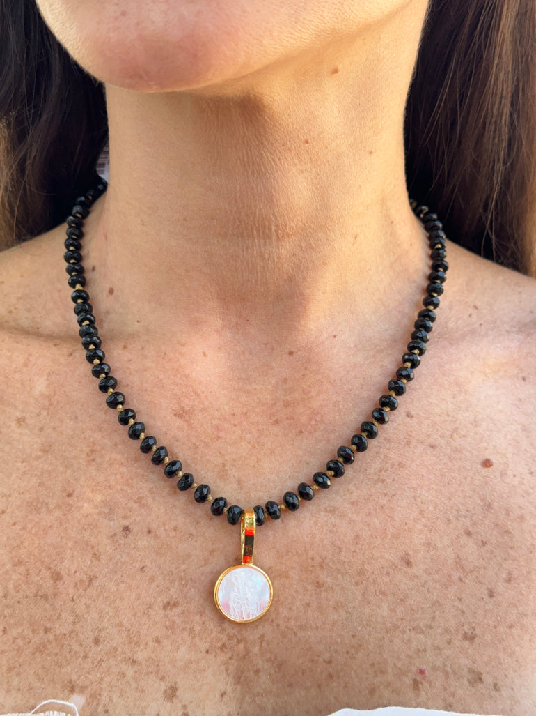 HANDMADE MOP RELIGIOUS PENDANT AND ONIX GOLD PLATED NECKLACE