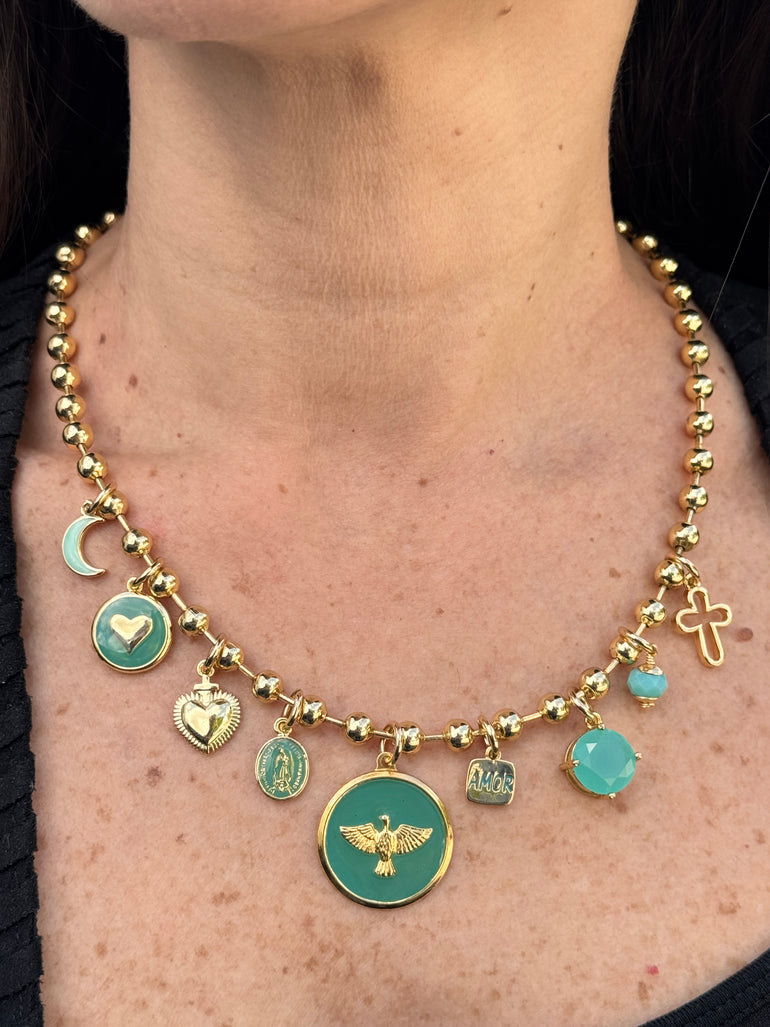 HANDMADE MULTI CHARMS GOLD PLATED NECKLACE