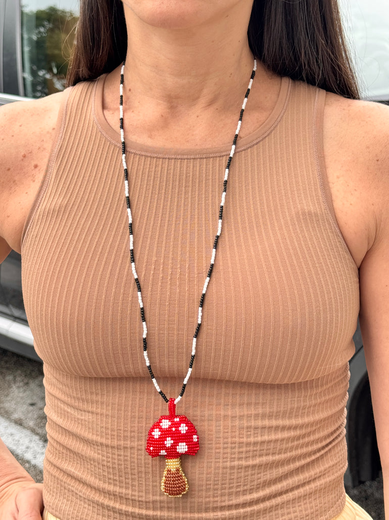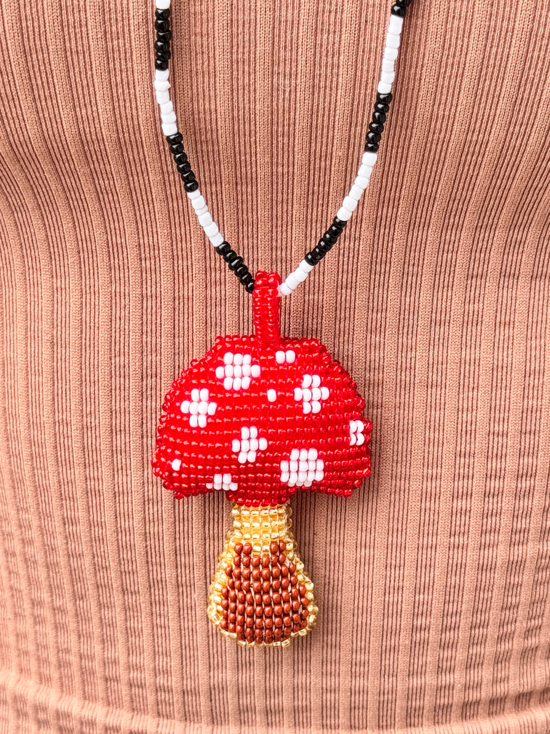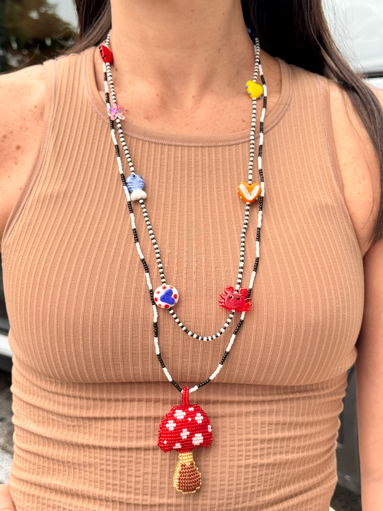 HANDMADE RED COLOR MUSHROOM ADJUSTABLE LONG NECKLACE