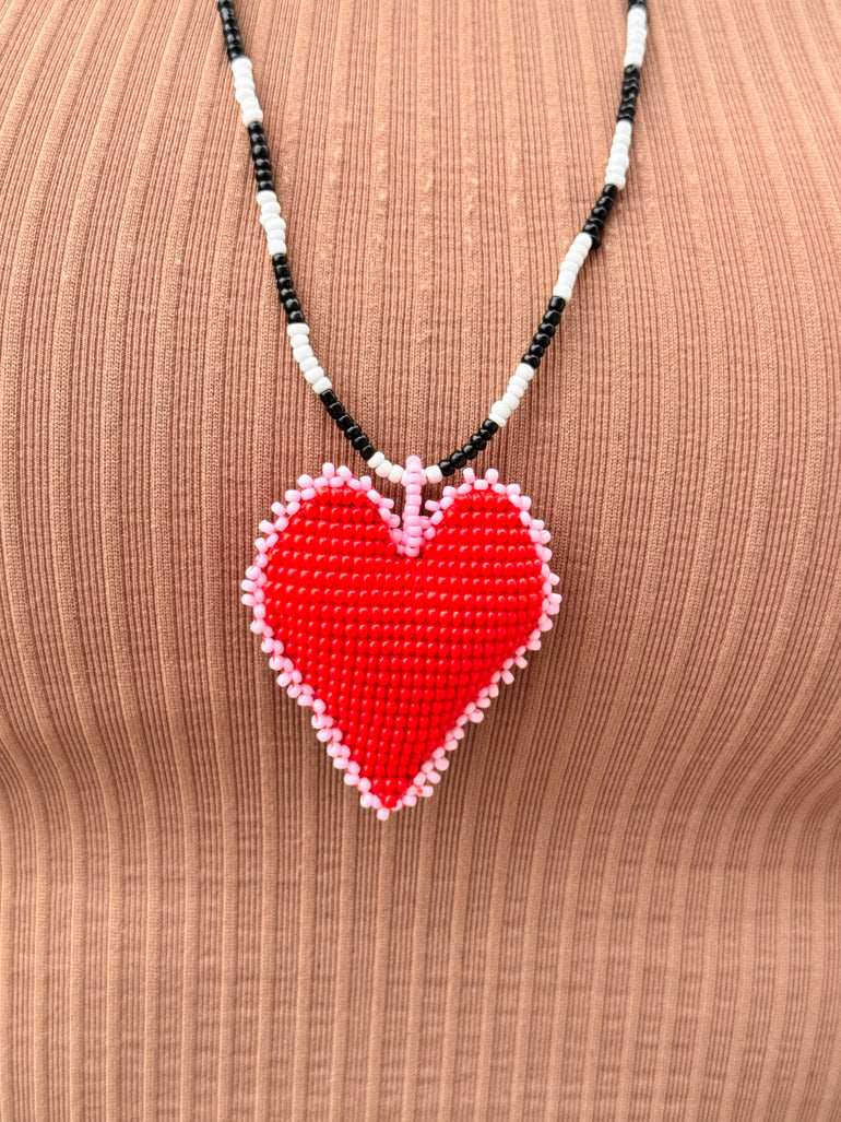HANDMADE RED HEART ADJUSTABLE LONG NECKLACE