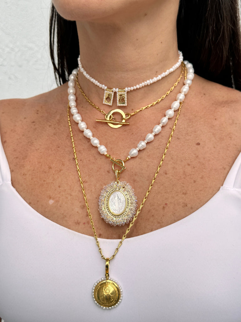 Expertly crafted and meticulously designed, the HANDMADE RELIGIOUS “JOSE GREGORIO HERNANDEZ” GOLD PLATED LONG NECKLACE is a timeless and elegant piece. Made with high-quality materials, this necklace showcases the devotion and faith of the wearer. A perfect accessory for those seeking a higher spiritual connection. Length 28”