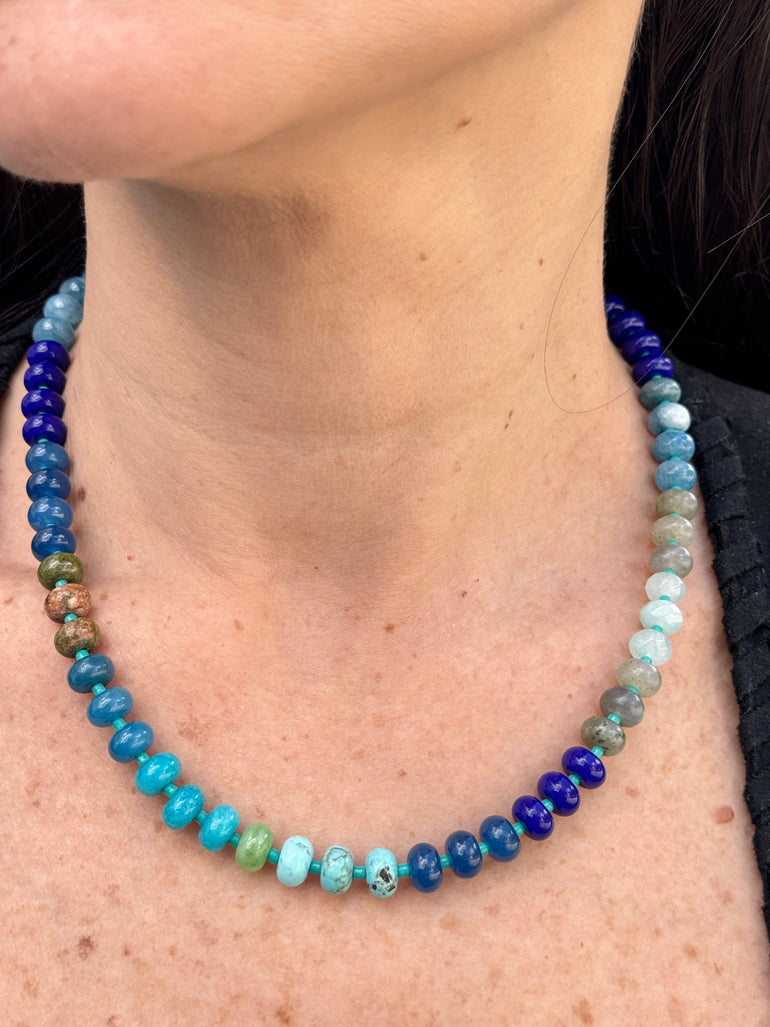 Expertly crafted with natural and unique semi-precious stones, this adjustable necklace adds a touch of elegance to any outfit. Handmade with care, each piece is one-of-a-kind, making it a perfect statement piece for any jewelry lover. Elevate your style with this beautiful addition to your collection. 16” to 18”