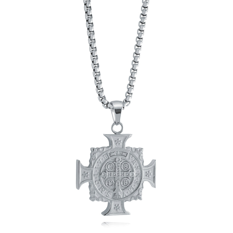 ITALGEM MEN STAINLESS STEEL SAINT BENEDICT CROSS NECKLACE
