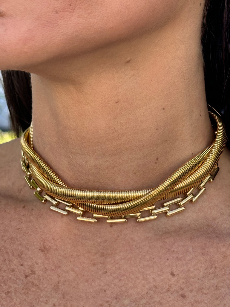 Crafted from high quality stainless steel, this adjustable choker is plated in luxurious gold for a sleek and modern look. Its durable material and customizable fit make it the perfect accessory for any occasion. Elevate your style with this elegant and versatile choker.