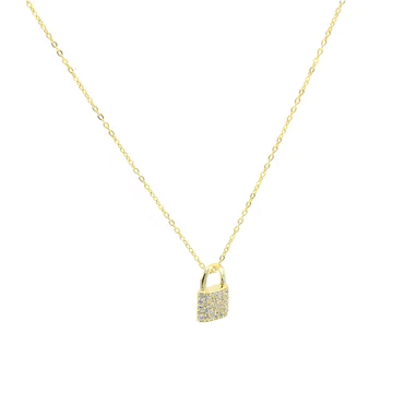 STERLING SILVER PAVE LOCK GOLD PLATED NECKLACE