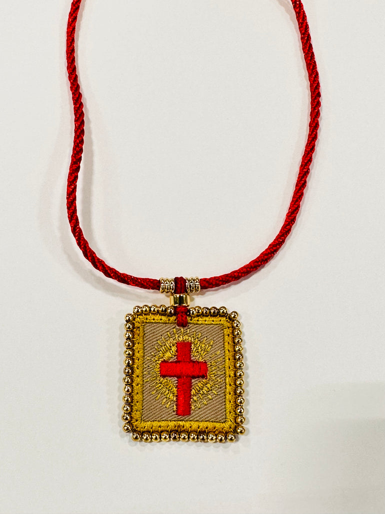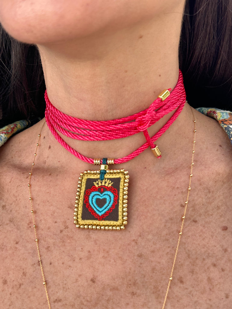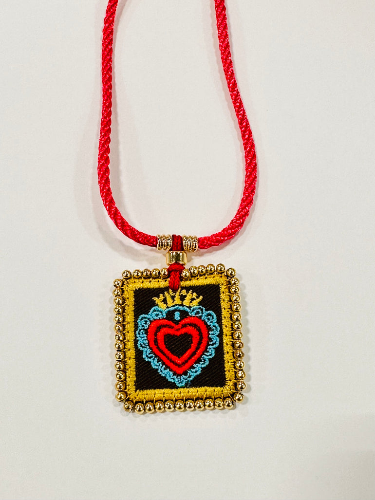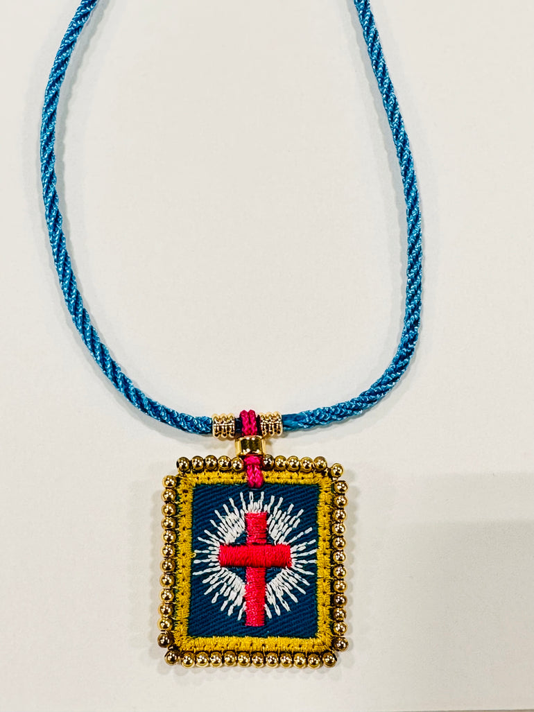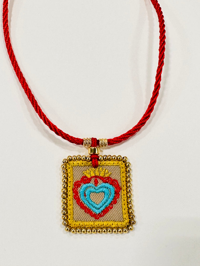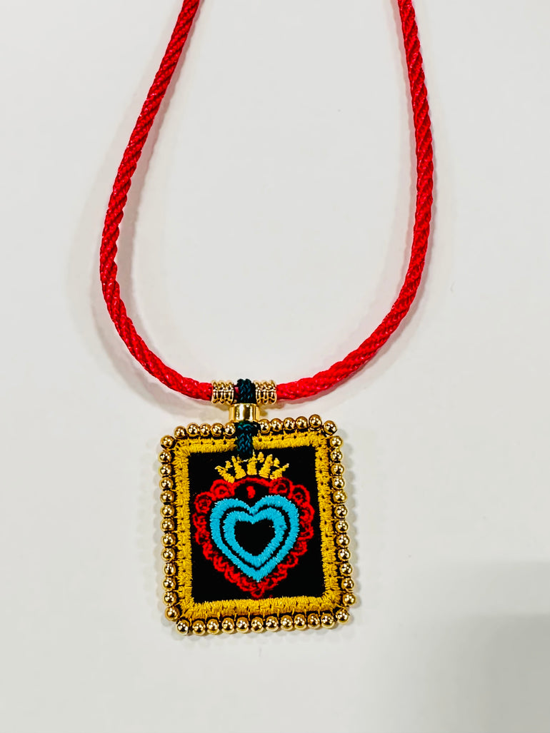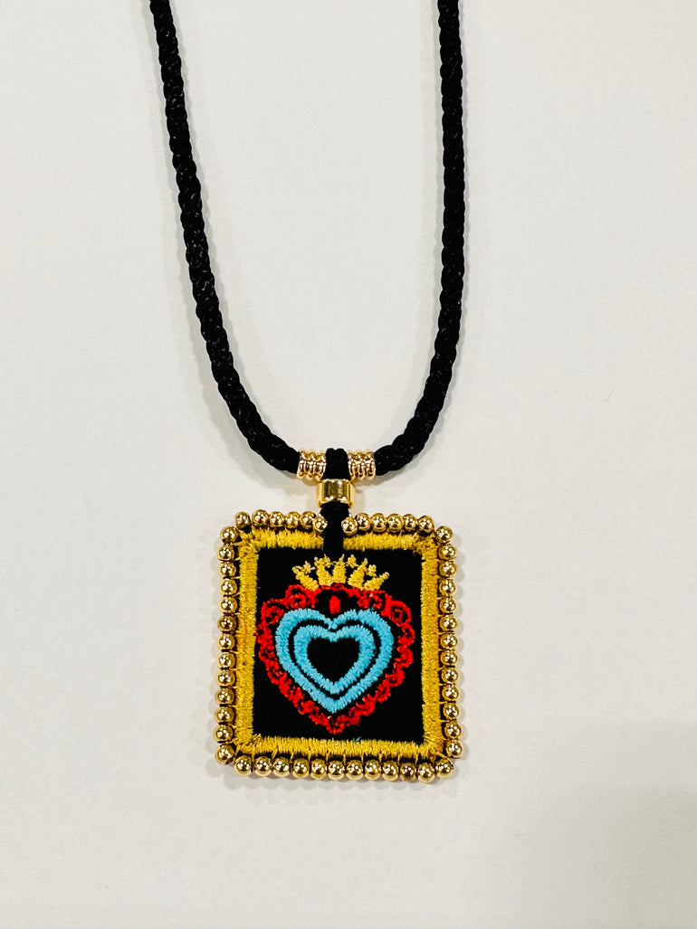 This beautiful handmade necklace is crafted with intricate, embroidered detailing and features an adjustable gold-plated chain. A perfect accessory to elevate any outfit, this necklace is a durable and timeless piece you'll love wearing for years to come.