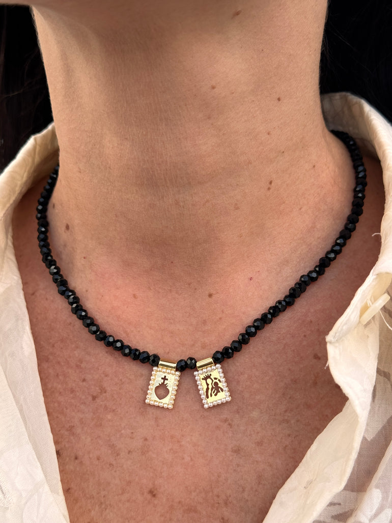 This handmade crystal religious adjustable gold plated necklace is a beautiful and unique piece to add to your jewelry collection. Its intricate design and adjustable length make it perfect for any occasion. The high-quality crystal adds a touch of elegance and the gold plating ensures long-lasting shine. Enhance your personal style with this stunning necklace. Length from 16” to 18”