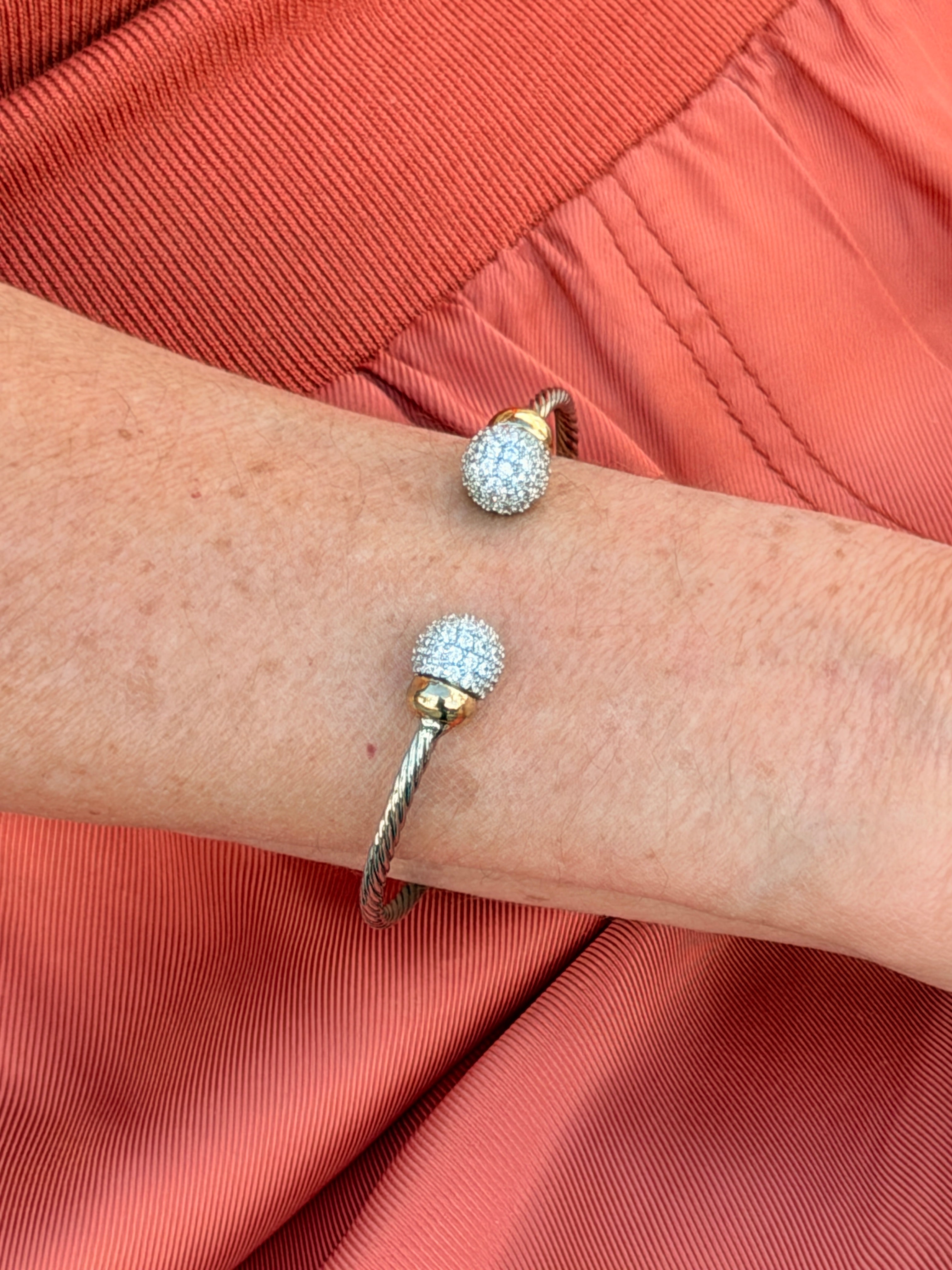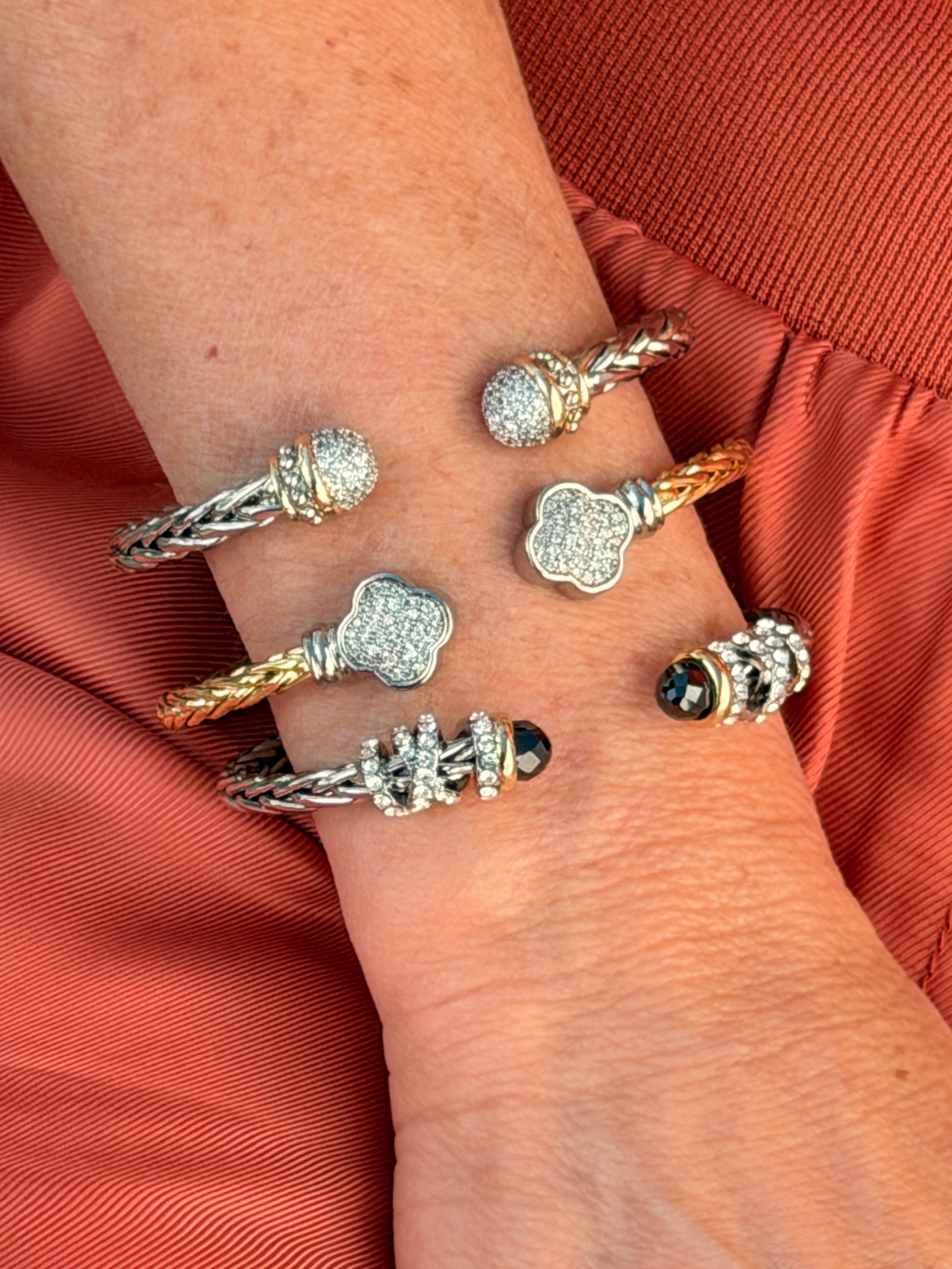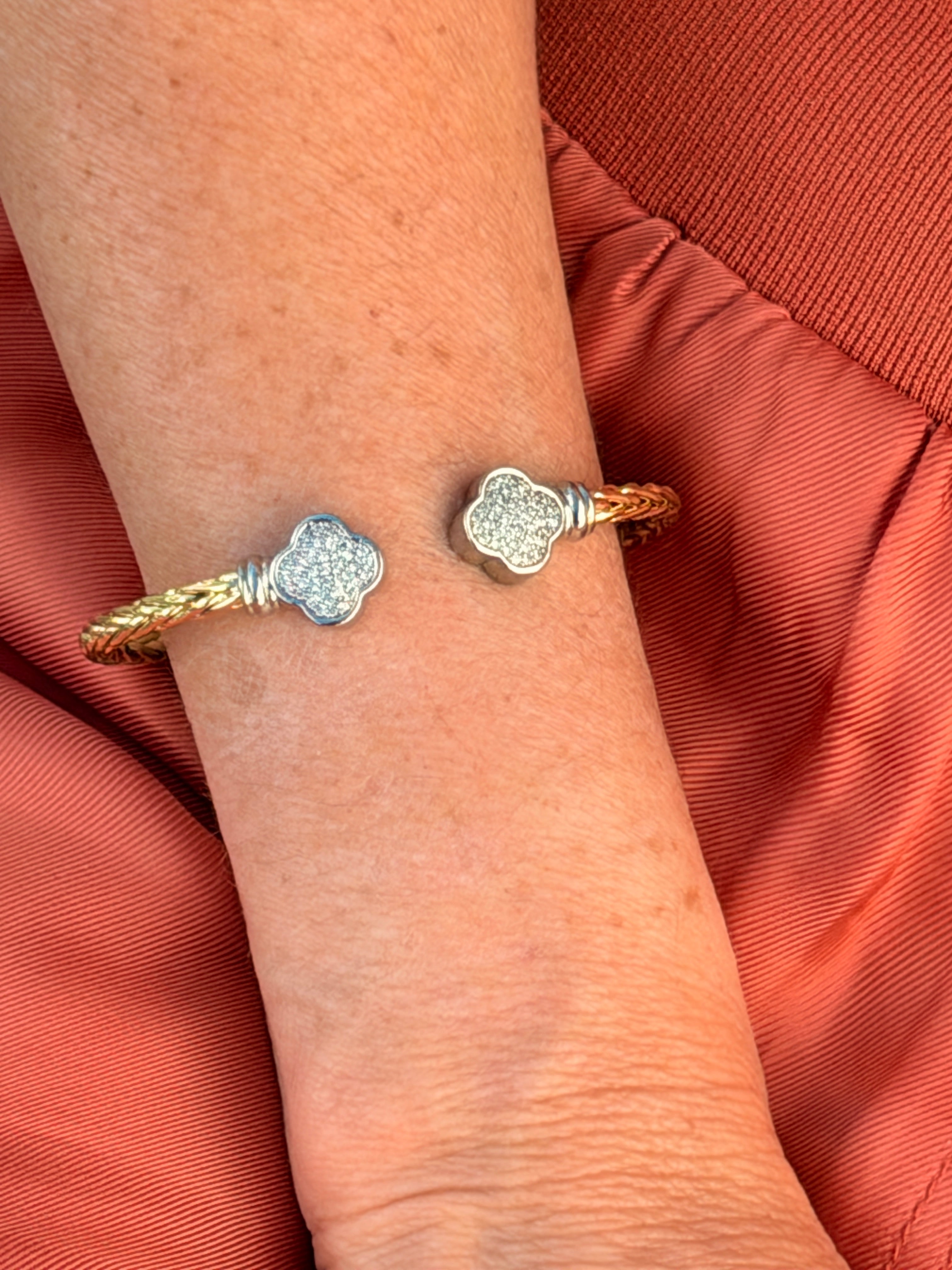 STAINLESS STEEL FLOWER PAVE GOLD PLATED CUFF