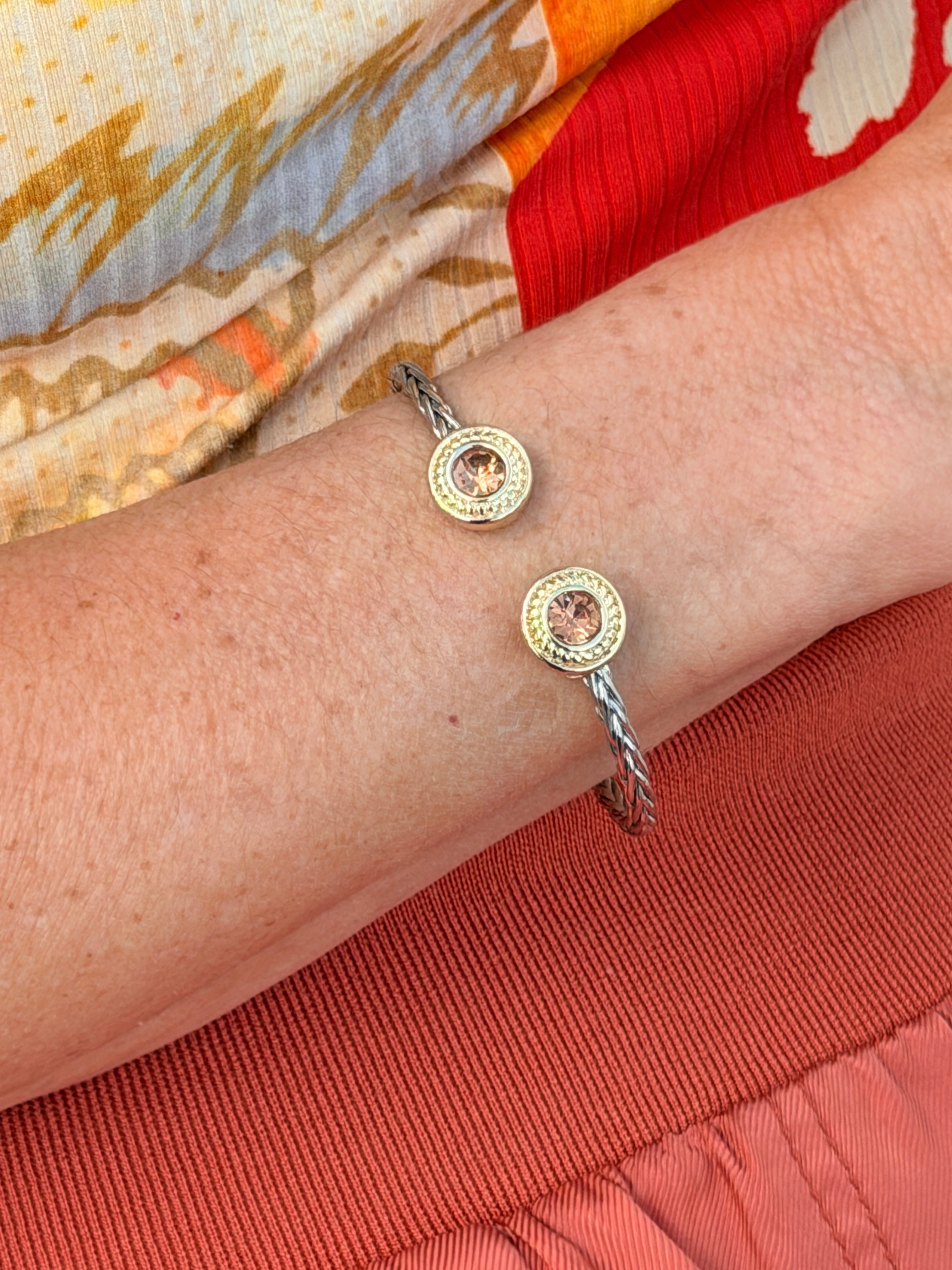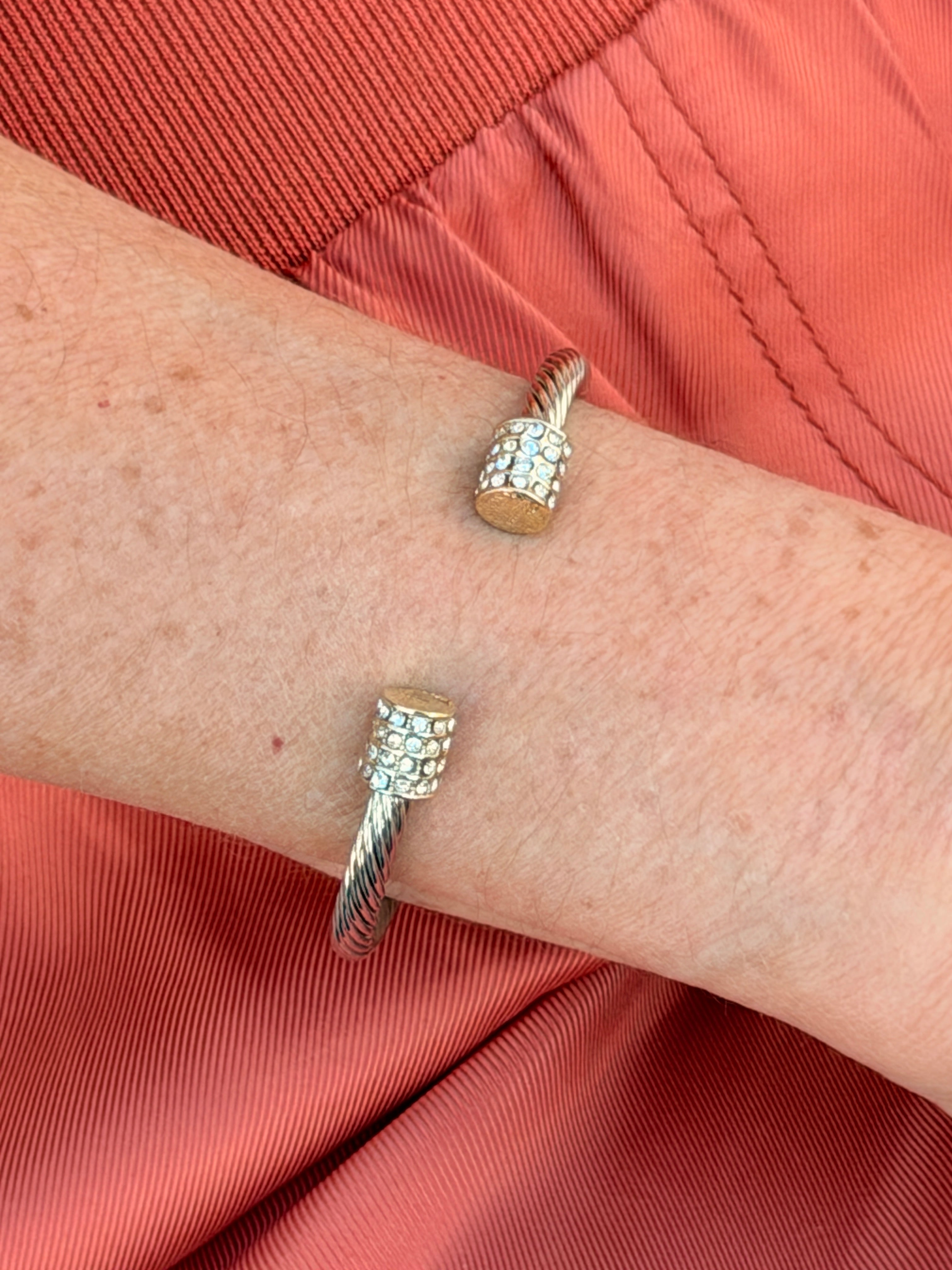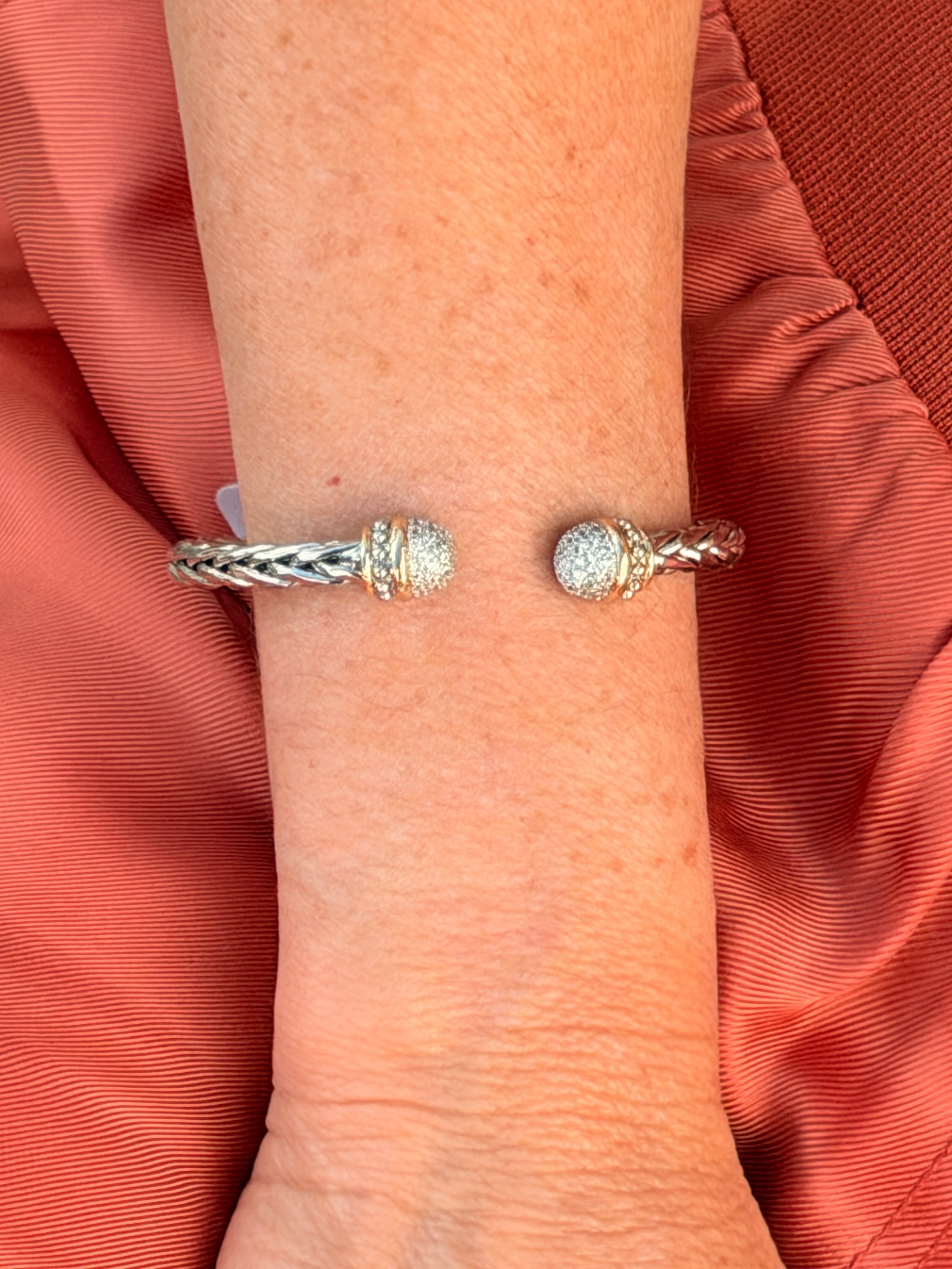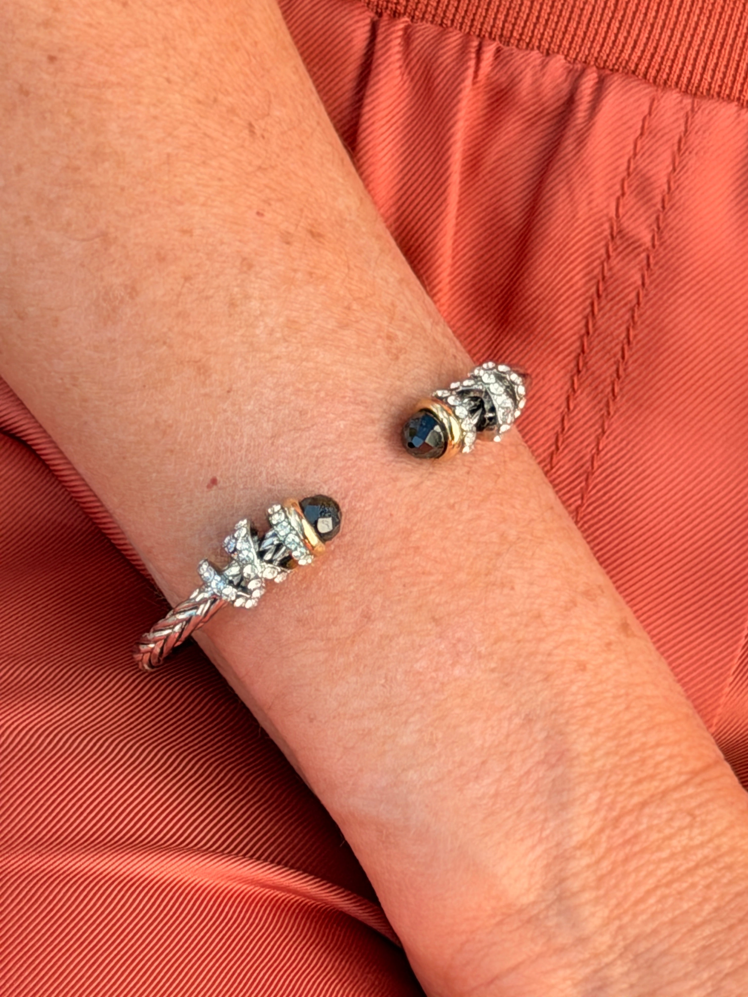 STAINLESS STEEL FLOWER PAVE GOLD PLATED CUFF