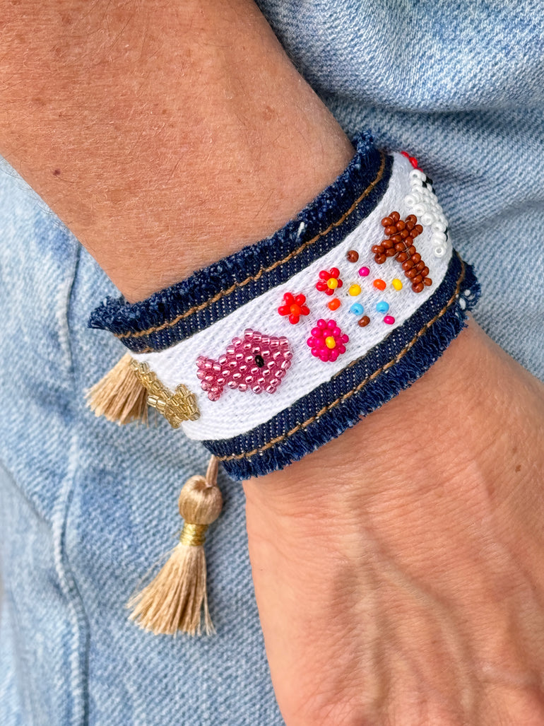 HANDMADE EMBROIDERED LIFE OF JESUS JEANS ADJUSTABLE BRACELET