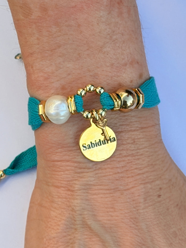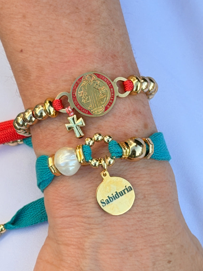 HANDMADE FABRIC ADJUSTABLE GOLD PLATED BRACELET