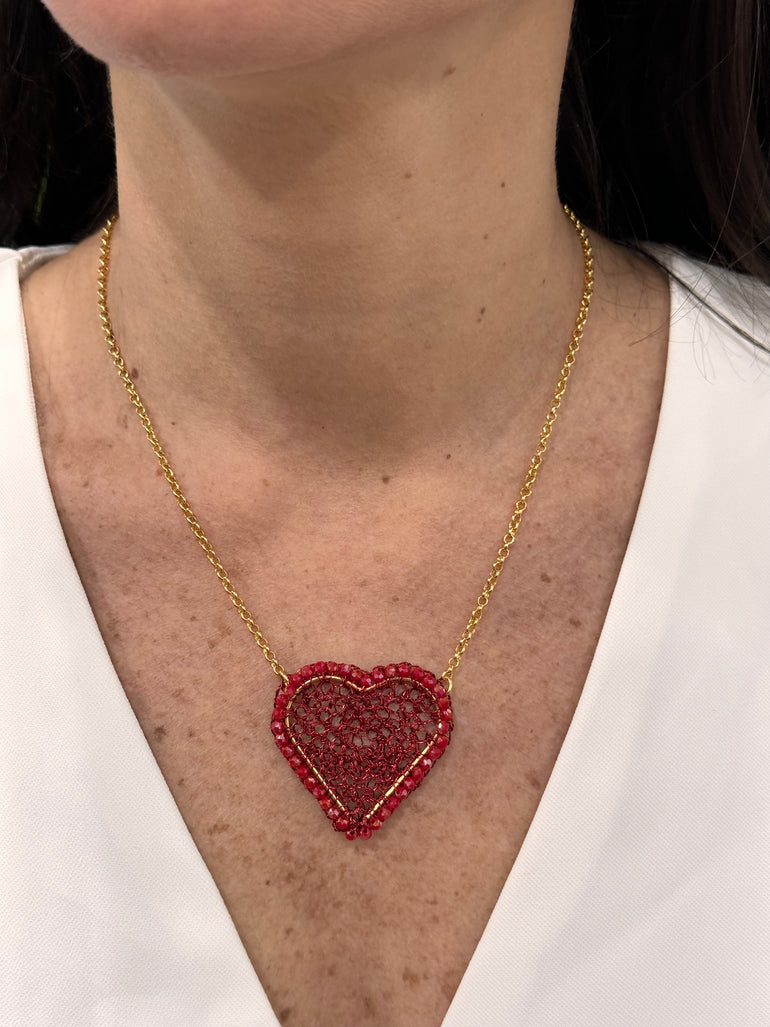 HANDMADE CROCHET HEART GOLD PLATED NECKLACE