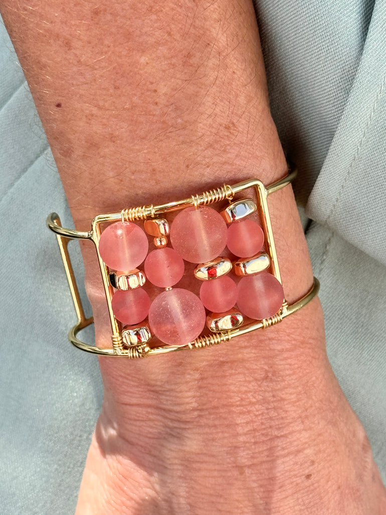 HANDMADE LIGHT PINK STONES GOLD PLATED CUFF
