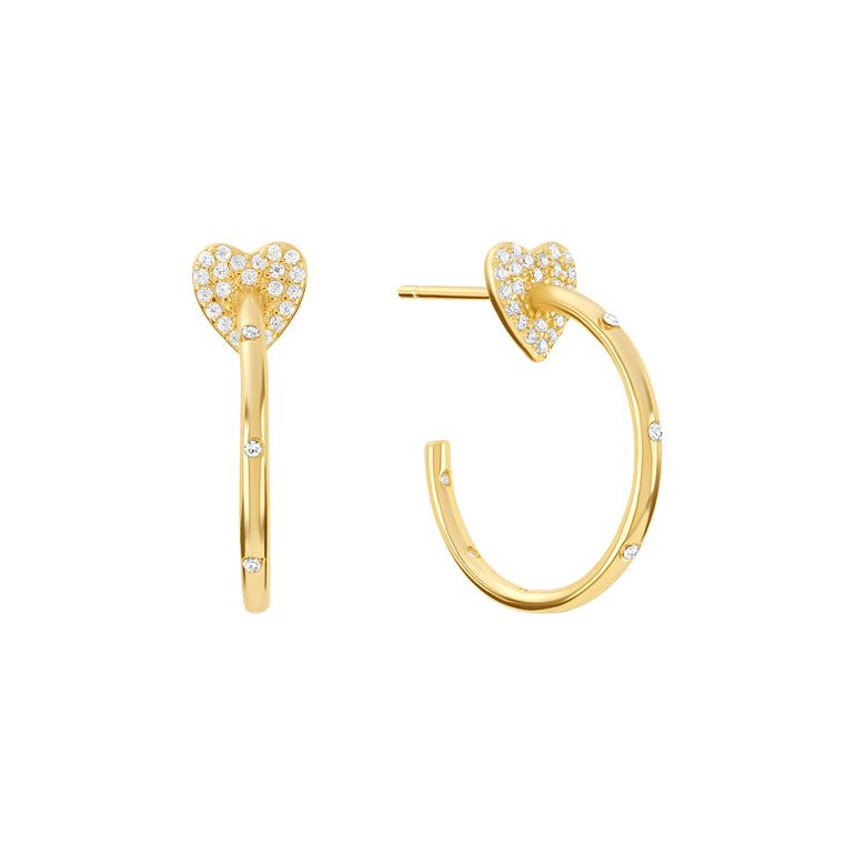 STERLIN SILVER GOLD PLATED 19MM CZ HEART HOOP