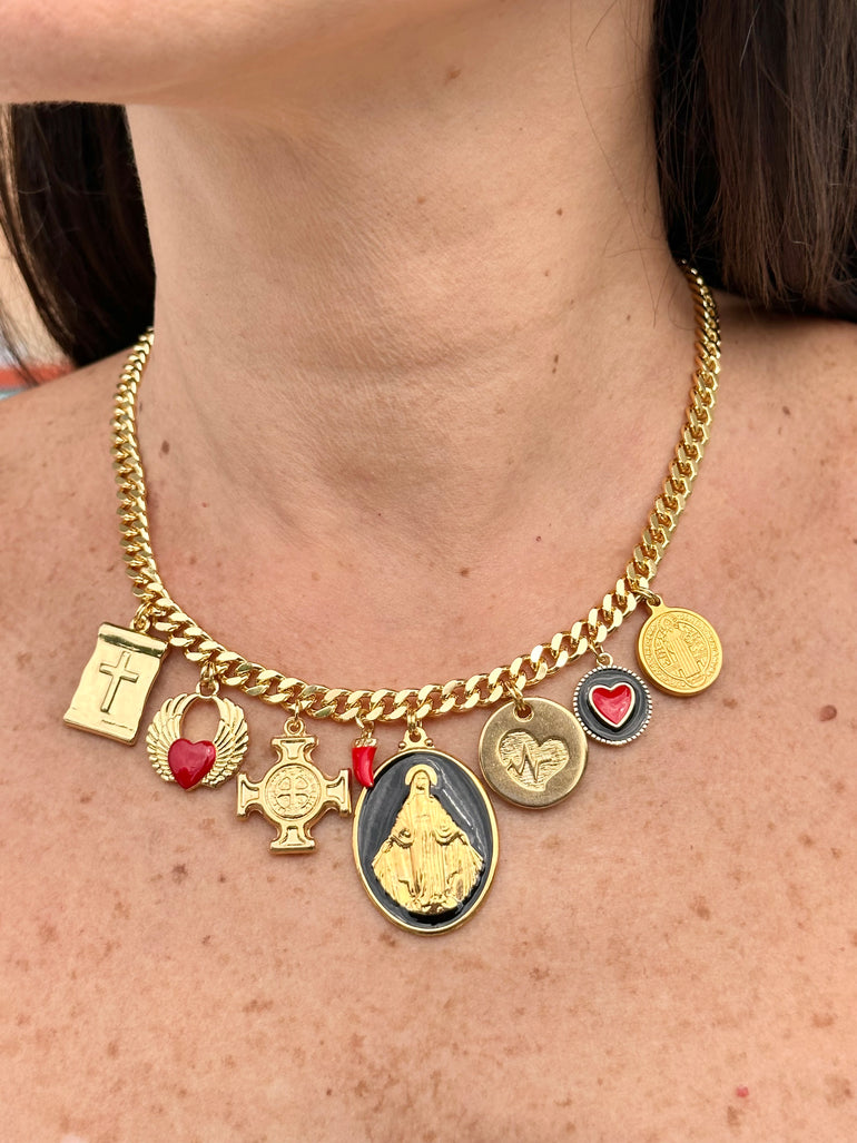 HANDMADE MULTI CHARMS GOLD PLATED ADJUSTABLE NECKLACE
