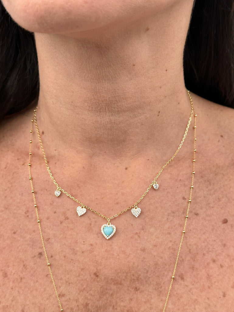 STERLING SILVER MULTI PAVE CHARMS GOLD PLATED NECKLACE