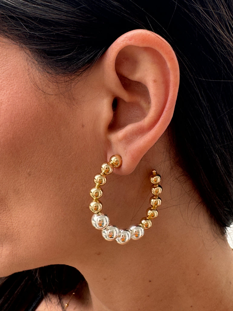 GOLD FILLED TWO TONES BEADS OPEN HOOP EARRINGS