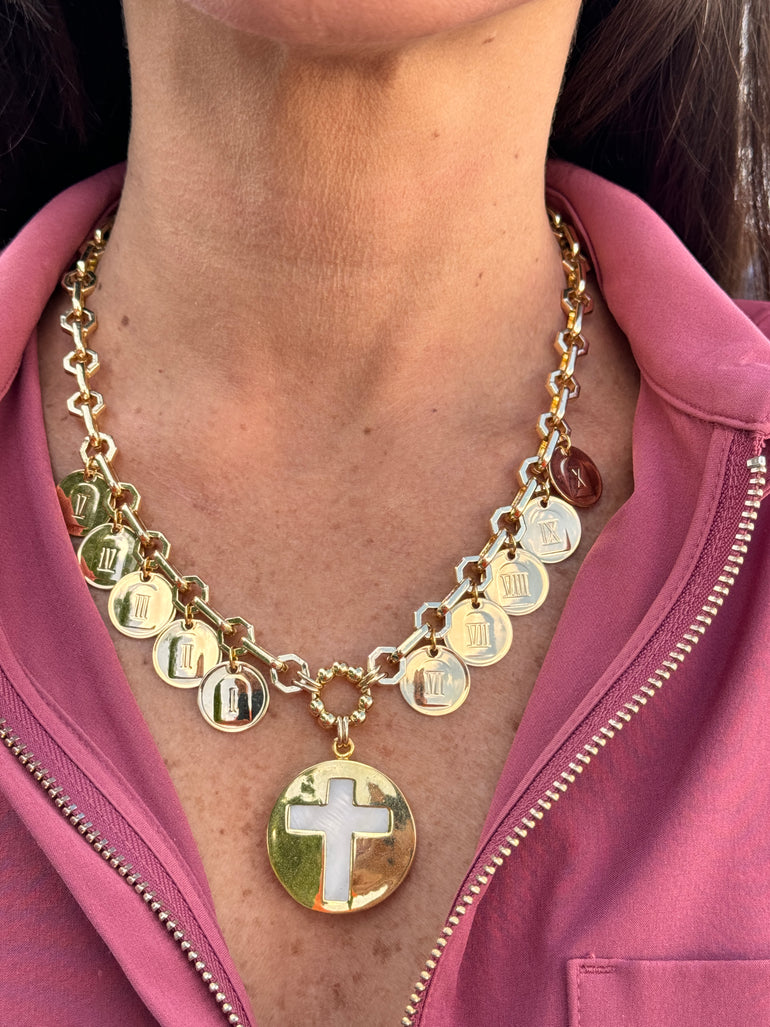 HANDMADE 10 COMMANDMENTS GOLD PLATED ADJUSTABLE NECKLACE