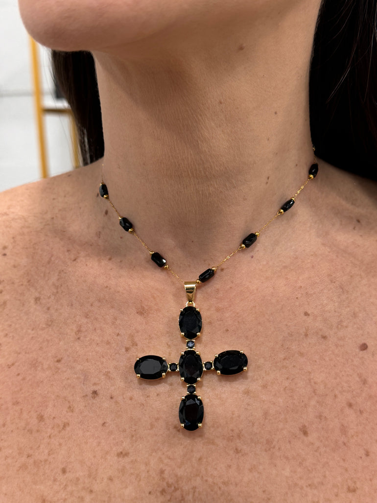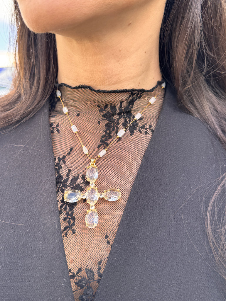 HANDMADE CROSS WITH CRYSTALS GOLD PLATED ADJUSTABLE NECKLACE