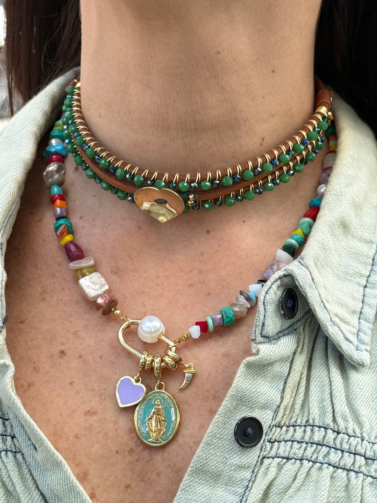 HANDMADE GREEN CRYSTALS ADJUSTABLE GOLD PLATED NECKLACE