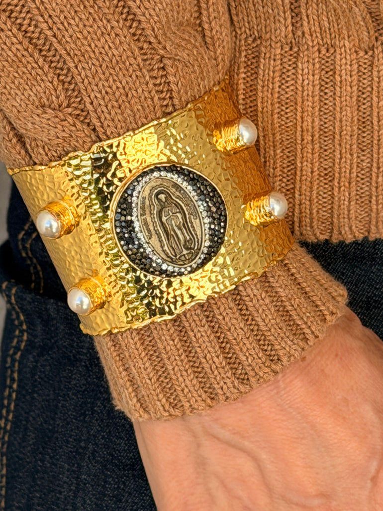 HANDMADE WATER PEARL OUR LADY OF GUADALUPE GOLD PLATED CUFF