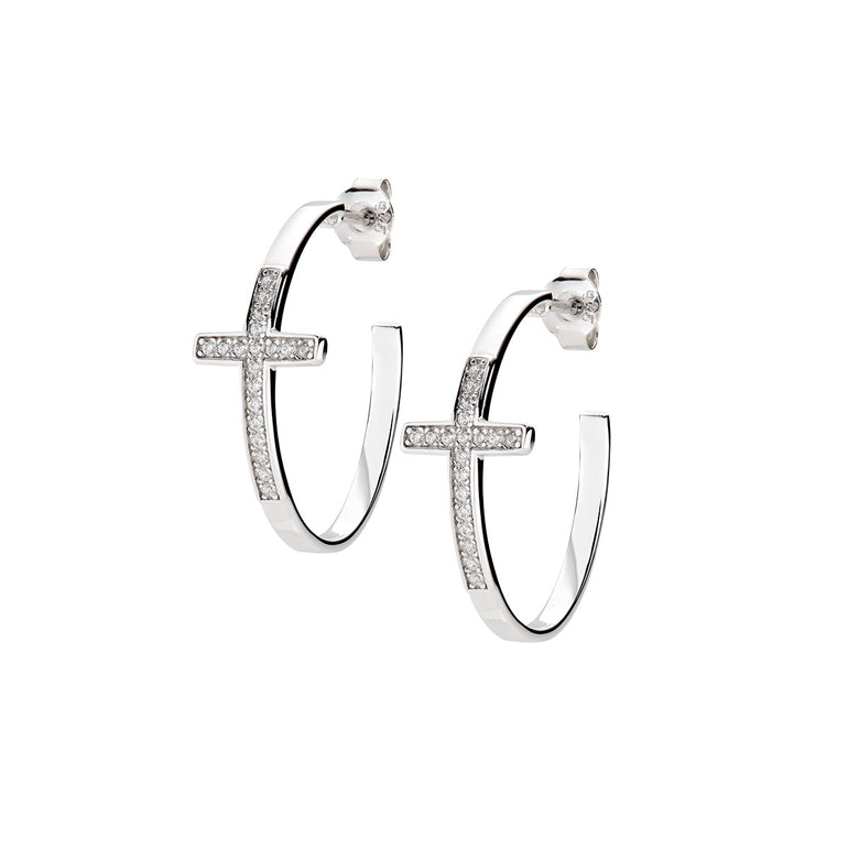 STERLING SILVER CROSS CZ RHODIUM PLATED EARRINGS