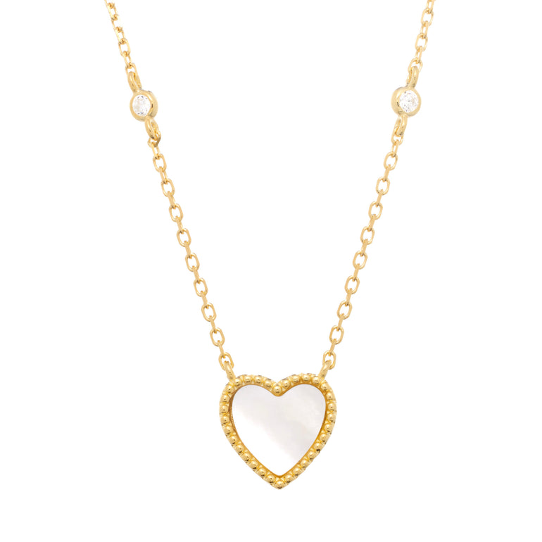 STERLING SILVER GOLD PLATED MOP BEAD HEART CZ NECKLACE