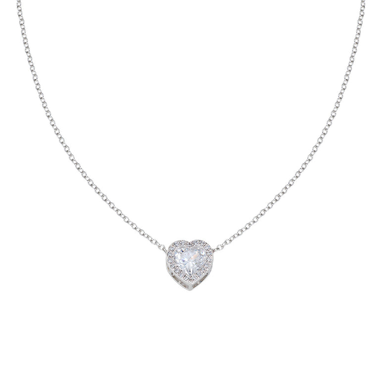 STERLING SILVER HEART CZ RHODIUM PLATED NECKLACE