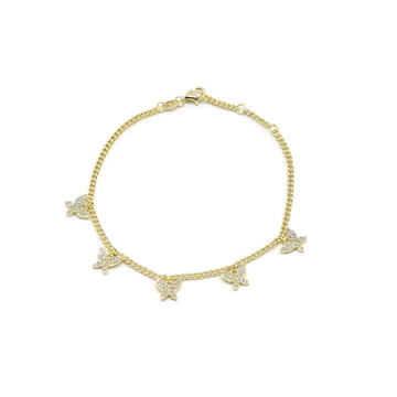 STERLING SILVER MULTI PAVE BUTTERFLY GOLD PLATED BRACELET