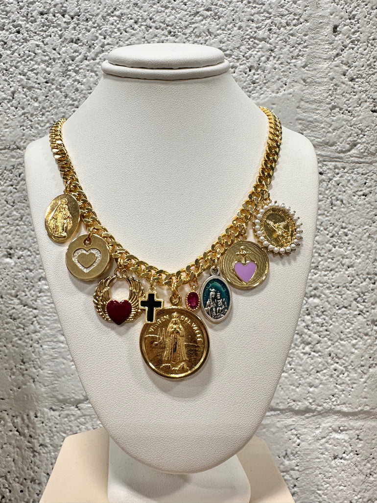 HANDMADE RELIGIOUS MULTI CHARMS ADJUSTABLE NECKLACE